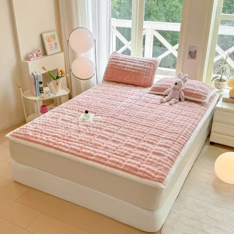 Winter Warm Plush Mattress Toppers Super Soft Single Double Foldable Milk Velvet Thicken Fitted Bed Sheet Bed Cover Tatami Mat